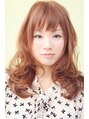 ベージュカラーと重すぎない、くずした前髪が可愛らしさをUP♪ゆるふわカールの中に顔周りのランダムな動きが、甘くなりすぎない大人可愛いスタイル☆