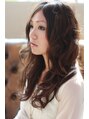 ランダムなウェーブの中に見えるねじれウェーブがスタイルのアクセントに★ふわっと広がるシルエットにマロンベージュの柔らかなカラー♪前髪を長めに作り、甘すぎない大人可愛いスタイルに★