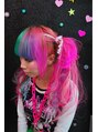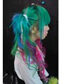お友達のおもちゃです。今日は、エクステをミックスでつけました。ツートンのカラーにしてたので、それに合わせてピンクとグリーンをベースにブルー、バイオレッド、毛糸のエクステなどをミックスさせてつけました。ツインテールができる長さにしました。