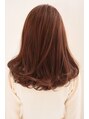 カットはグラデーションで毛先と中間に動きが出る様に調節。ポイントで顔周りを短めに。パーマは中間から毛先にかけてランダムに。カラーは肌のツヤ感をUPさせるオレンジで、甘すぎない感じに。ポイントでローライトも使用しています。