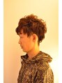 襟足からサイドにかけて刈り上げて、すっきり感を出しています。トップからバックは丸みを作り、全体にボリューム・クセっぽさを出した動きのあるスタイルです。カジュアルやスーツスタイルにもおすすめです。