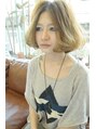 アゴラインの、ワンレンベース。全体にスライドカットで、ボリューム感、シルエット調整。少し、モードカジュアルな、イメージです。