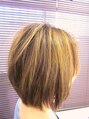 前下がりボブの少し長めでトップをフワッとしやすいように軽くしました。カラーはナチュラル系をベースに派手になり過ぎず、でも、わかるようにハイライトを入れて動きを出しました(*^^)v