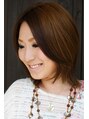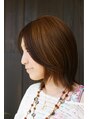 重ためのボブから軽くレイヤーを入れ量感調節。全体には赤味を抑えたスモーキーカラーを。顔周りはロートーンで表情をハッキリと見せ小顔に♪