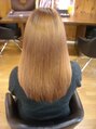 矯正は根元から15~20センチくらいをかけました。ダメージヘアーでしたが、きれいに仕上がりました。