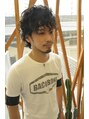 サイドは、ツーブロックでスッキリと刈り上げてルーズなMIXパーマをかけています。カラーは、ブラックで、スタイルをひきしめます。