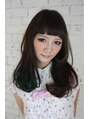 全体をローレイヤーでカットし片方のサイドのみリップラインでブラントにカット!バングは厚みと丸みをいかしたドールバングに☆カラーはアンダーとサイド、対極にグリーンブルーのマニキュアでグラデーションに♪