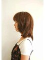 髪の毛の量が多く、動きが欲しいにもかかわらずのっぺり見えてしまうので、サイドをマッシュにして短くし、所々ローライトを入れ立体的に、毛先はコテパーマをかけて軽やかにしてみました。カラーの色味はゴールドベージュです。