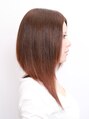 思いきり長短をつけた前下がりのボブスタイル。えり足ギリギリで、サイドはバストライン位まで、差をつけた前下がりのスタイルなので、個性を強調したい人にピッタリ!コスメ系縮毛ストレートでカラーとの同時施術もOK!