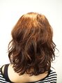 秋を先取りしたパーマヘアです。ラインは重いのですが、髪の重さを取りパーマで軽やかにしています。
