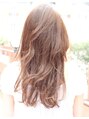 ナチュラルベージュで透明感のある色に。顔周りにレイヤーとスライドカットで動きを出してパーマをオンすればラフでリゾート気分のヘアに。