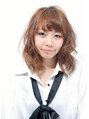 ベースは全体的に重めで毛先に軽さを出したミディアムボブ スタイル毛先にゆるめのほどけるようなパーマをプラススタイリングもラクです
