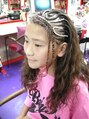 ハーフコーンロウにエクステとキラキラ☆をプラスしました。ダンスやってるKID'Sには外せないヘアスタイルです。