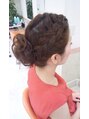 サイドを大きく編みこんで後ろでカジュアルなカールのお団子を作りました。オーダー率がとっても高いスタイルです。