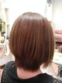 縮毛矯正は前半分するときと、全頭するときと別けて極力ダメージをかけないようにしています。最初は長かったのですが、来店の度に短くなって今では、ショートに近くなってます。短いスタイルなので、出来る限り自然になるようにアイロン施術しています。