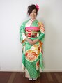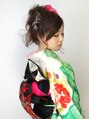 華やかなカジュアルアップスタイル。成人式など振袖に合わせたスタイル。晴れの日の衣装なので前日までにスタイル、着付けの帯結びなど打ち合わせをさせていただいています。成人式のご予約受け付けています。成人式¥15,000 セット、着付け、メイク込み