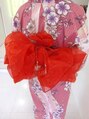 今日は横浜の花火大会を見に行かれるそうです♪可愛いリボンセットと浴衣の真紅の帯結びがポイントです☆大好きな彼とのデート楽しんで来てくださいね☆