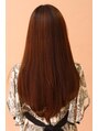 顔周りから毛先にかけて、レイヤーカット。バックはワンレングスで毛先だけワンカールのパーマをかけ、ストレートヘアに少しやわらかさをプラスしました。