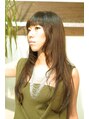 ぶっちぎりな存在感を発揮しまくりのシャープなストレートヘア★パッツン前髪と、フェイスラインにかかる主張のある毛束がポイント!カラーはベースにハイライトを入れて、上から暗めのマットブラウンをON!カッコイイイメージで仕上げました。