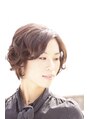 大人系のボブスタイル。あえてパーマではなく、ホットカーラーやコテ等でハッキリとしたカールを出しました。カラーは全体ではなく、地毛をベースにレッド系のウィービングを入れ、落ちつきの中に少し動きをプラスしました。
