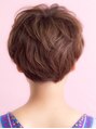 ネープ短めのふんわりショートスタイル☆顔を包むマッシュベースの顔周りは小顔効果バツグンで顔型を選びません!カラーはツヤの出るピンクとグレイを混ぜ透明感を出し、ゆるいパーマを全体にかけてやわらかさプラス!女性らしさを残したおススメショートです