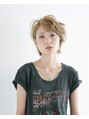 明るめのカラーでおしゃれ上級者向け。表面をボリュームを出してくしゅっとさせ、片方だけ耳に掛けることでアシンメトリーっぽく、周りに差をつけたショートです。