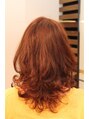 - カラーは8レベルのモノトーンオレンジ、パーマは毛先1回転半巻き込んで毛先のニュアンスを出して☆