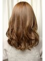 毛先に重さをのこしつつ、質感やシルエットで軽さをプラス。あご下から動きが出るようにレイヤーを入れたあとにエアーウェーブをして、ラフで柔らかいラフリーカールをデザイン。さらにツヤのあるヌーディーベージュのハイライトで立体感アップ
