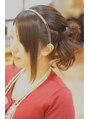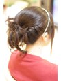 サイドはひきつめて、トップにボリュームをだし、バックはふわふわにして、かわいい印象に。フロントはおろしてさらにキュートに。