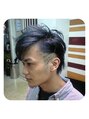 秋のオススメスタイル[メタリックブルー]。ナチュラルなのに存在感はバッチリです!!どんなスタイルにもマッチします。サイドのみのツーブロックにはスパイダーやラインがはいっています。