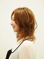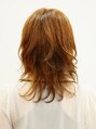 前髪を長めに残して流したレイヤースタイル。全体の印象が重くなりすぎないよう明るめのカラーをしています。ただ明るめのカラーだと、艶や潤い感が失われてしまうので、オレンジ系の色で艶感を、トリートメントで潤いとおさまりをプラスしました。
