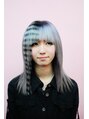 かなえちゃんです。毛先5センチくらい痛んでる所をカットして軽くしてブリーチ二回リタッチをして右サイドにシルバーに黒のボーダーを入れて全体は、アッシュバイオレッドをいれました。バイオレッドは黄色と打ち消しあって、アッシュがいい色になりました。