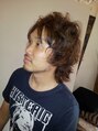 柔らかい癖毛なので、トップだけ立ち上がりとうねり程度のパーマを。ハネて扱いにくい前髪はボリュームダウントリートメント。忙しい朝はワックスをもみ込むだけでOK。カラーはアッシュ系11トーンに顔周りにローライトを載せて3D効果