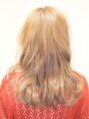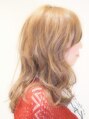 32ミリのコテでランダムに巻いてワックスで動きをつけて、優しい雰囲気のやわらかい印象に。[三国/阪急三国駅]
