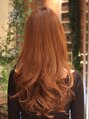 大きな強めカールで華やかな雰囲気のレイヤースタイル。重く見えがちなロングは耳横からのパーマでふっくら軽やかに仕上がります。