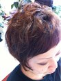 ボブベースのショートスタイルに柔らかくパーマをプラス!(今回は楽なようにクリープパーマでかけました)細毛で顔回りにだけ癖がある方なので全体にパーマがあると楽ですよね~という事でムースで簡単に仕上げています!