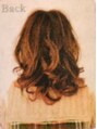 肩下のグラデーションベースで、トップにレイヤーを加える。トップと毛先は平巻き、中間はスパイラルで根元からパーマをかけて動きを出し、重さを軽減。寒色系のマットベージュで冬っぽさを出しながら、グラデーションで入れた毛先のレッドで温かさもプラス。