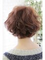 ラウンドグラデーションカットをベースに全体に柔らかくうねりが出るようにパーマをON!寒くなってくるこの季節、厚手の洋服やマフラーなどを巻いてもスッキリ見えるおすすめのショートスタイルです。前髪のワンカールがとってもキュートです!