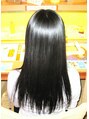 前髪なしのセンターパートで顔立ちを生かしたスタイルです。ロングなので根元から毛先までのダメージレベルが違う為、薬剤コントロールして、毛先までサラサラに仕上がりました。