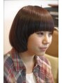 目の上ギリギリでラウンドさせた厚めのバングにサイドをつなげてマッシュルームカットにしました☆カラーはトーンを抑えめに♪