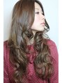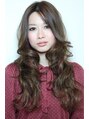 カットはフロントからサイドにかけてたっぷりレイヤーを入れバックにかけて重たくなるようにカット。パーマは大きめのロッドで巻きました。カラーは10トーンのアッシュブラウン。フロントからサイドにハイライトでピンクのマニキュアを入れました。