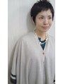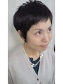 目元が印象的なのでバングを短めにして、個性が出るようにして、少しクセがあるのでハチの部分は長さを残し、グラデーションの丸みが出るようにして女性らしさを残し、トップのハチ上部分のみ動きが出すようにレイヤーを入れています。