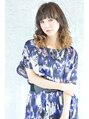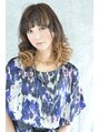 大人可愛いふんわりカールヘア☆ランダムな動きとエッジのあるハイライトカラーで、モードなお洒落感を出します。前髪をワイドにとって、上から落ちた髪の毛で透け感もでやすくなっています。ちょっと人と違う感じにしたい方におススメです☆