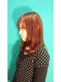 女性の優しい感じを前面に押し出したスタイルです。全体に重めにカットされたスタイルに大きなカールをゆるく出してあげととっても良い!カラーはクリスタルアッシュでツヤと軽さを出してます。