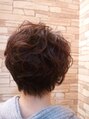 もう少し長さのある重めボブから気分を変えてプチイメチェン♪後頭部にしっかりとボリュームを出し襟足をキュッっとしめてスタイリッシュな印象を!!少し大きく強めに出したパーマで甘さと動きを出しました♪