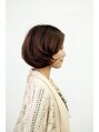 少し重めのボブ。カットで自然な動きが出るような束感を作り、パーマを毛先にワンカールかけました。