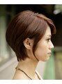 輪郭をすっと包む形のショートボブです。自然に髪が後ろから前に流れるようにカットするのがコツです。ナチュラルなのに存在感を放つヘアが実現しました。