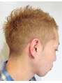 くせ毛のモデルさんですが、明るめのカラーとほんのりツーブロックの動きのでるカットで雰囲気が良いとおもいます。明るめのベージュ系のカラーがかっこいいモデルさんに合っていると思います。