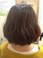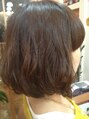 グラデーションボブピンク系のカラーでツヤ感アップパーマは大き目のロッドで根元までかける事で全体が柔らかくナチュラルな仕上がり