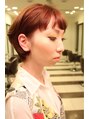顔周りをワイドに切り込み、バングにポイントを置いたマッシュボブです。片側の髪を耳にかけ、アシンメトリーなスタイルに見せています。カラーはツヤ感を強調するアプリコットカッパーです!
